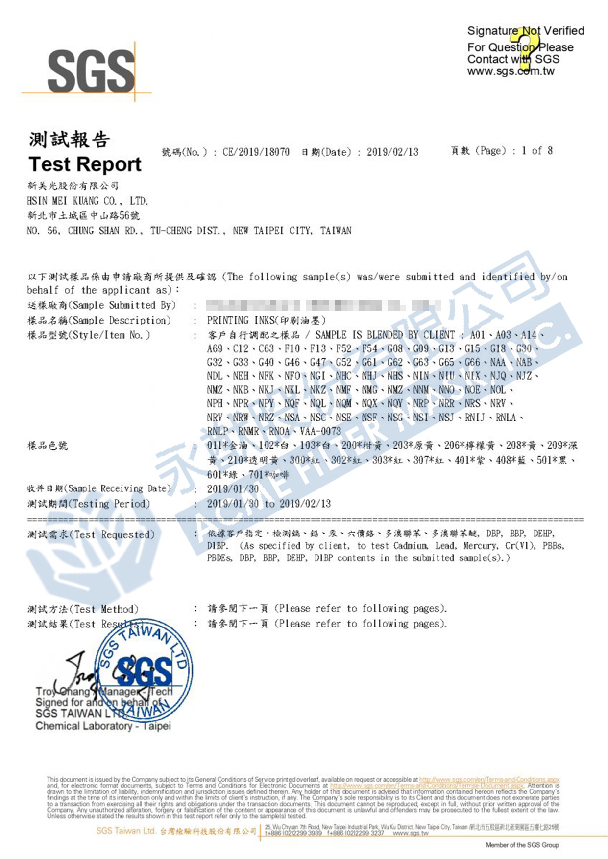 CNS15290 偶氮-甲醛 & CNS11820 螢光物質測試報告 (黑色, 紫色)